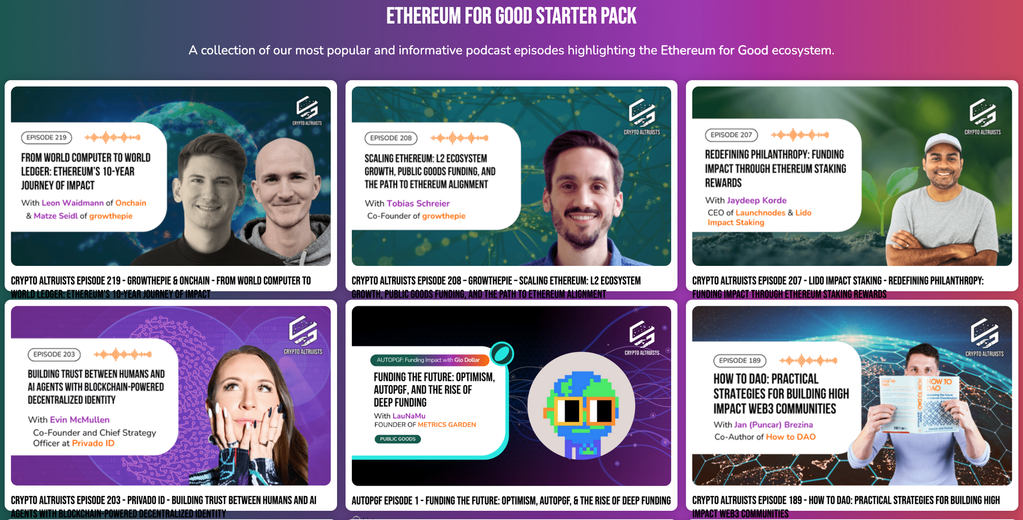 Since June 2021, Crypto Altruists have built one of the largest collections of content on Ethereum for good. It’s time to bring Ethereum out of the crypto echo chamber and into the global impact economy.